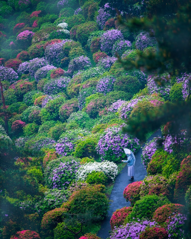 約2万本のツツジがすり鉢状の斜面に咲き誇る、今がまさに旬のスポットです。